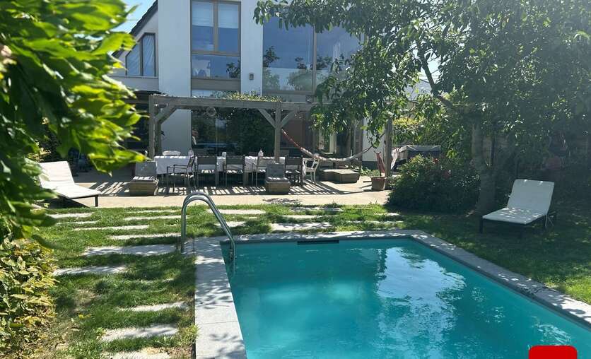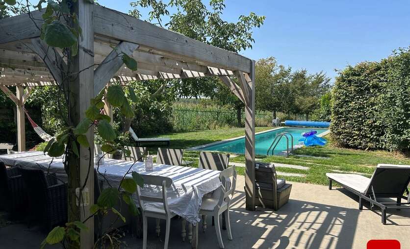 La maison offre de généreux volumes, comprenant quatre grandes chambres (dont une avec dressing) et deux salles de bains entièrement équipées. Les espaces de vie sont lumineux et ouverts, avec un salon convivial donnant sur un vaste jardin offrant une vue imprenable sur la campagne environnante et une cuisine familiale donnant sur une terrassse et jardin avec avec verger attenant. Un bureau est également prévu pour le télétravail, ainsi qu’une pièce polyvalente pouvant servir de salle de sport ou de hobby. Deux garages complètent l’ensemble. À l’extérieur, vous profiterez d’une piscine déjà installée, idéale pour des moments de détente en toute tranquillité.