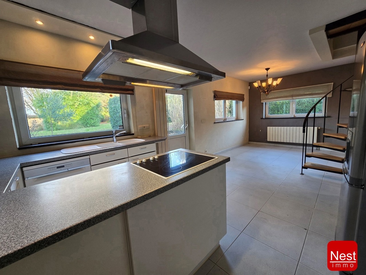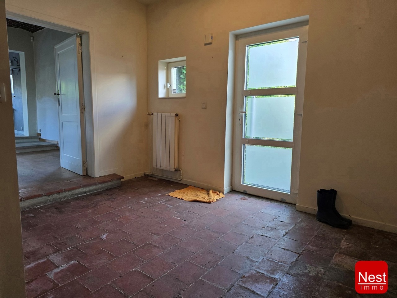 Ferme rénovée (1995) très bien située sur 15 ares de terrain. Charmante maison avec trois chambres. Au rez-de-chaussée : un hall d'entrée avec WC séparé, un salon avec feu ouvert et parquet massif, un bureau, une salle à manger et une cuisine avec accès à la terrasse et au grand jardin. Au premier étage : trois chambres à coucher, un WC et une salle de douche. Garage fermé (1 voiture) avec allée pour 2 voitures. Sous-sol et grenier (en partie aménageable). Très bien situé géographiquement.